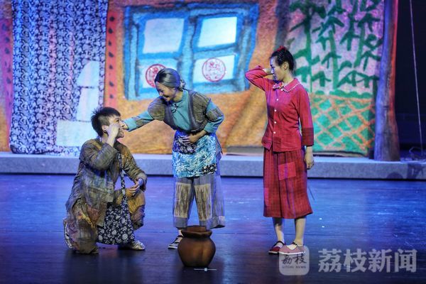“哥哥你光脚冷不冷……”舞台上,感动人的“泪点”伴随着情节一幕幕展开,一次次击中人心。因为家庭贫困,青铜把仅有上学机会让给了葵花,当葵花看见哥哥为了自己卖了脚上的芦花鞋,光脚走回家时,无比心疼地将哥哥冰冷的双脚拥入怀中。这一幕,让不少观众在台下留下了心疼的眼泪。