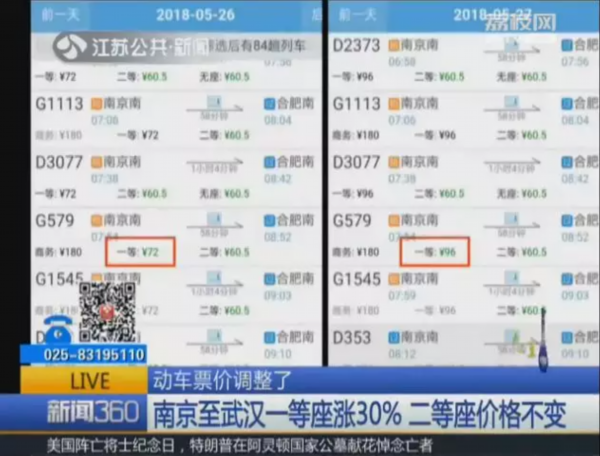 此外,铁路总公司还表示,今年7月5日起,还会对合肥至武汉、武汉至宜昌、贵阳至广州、柳州至南宁、上海至南京、南京至杭州6段线路的公布票价进行优化调整。