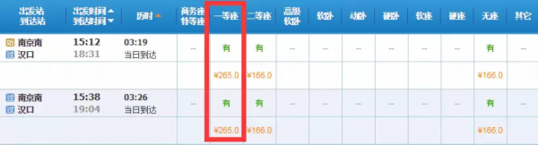 但南京至武汉的高铁列车票价变动较大。调整前一等座票价为200元,调整后一等座票价为265元。