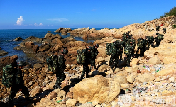 武警三亚支队支队长徐正晓介绍,为有效应对可能发生的“恐怖分子”从海上通道潜入等突发情况,支队着眼使命任务需要,在海边和丛林地组织极限训练,旨在提高部队应对处置突发事件能力。