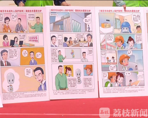 车内外,通过车身、把手、椅背等部位,生动形象地展示了未成年人保护“强制报告制度”的内容:“发现儿童受到侵害,应立即报警和报告南京市未保综合服务平台12355”。另外,活动主办方还别出心裁地将未成年人保护24小时举报热线,融入65路公交车的语音播报系统。当天,《南京市未成年人保护条例》漫画绘本也正式发布,深受市民喜爱的虚拟人物大蓝鲸(保仔),以及宁宁和童童等主要卡通形象,成为该绘本的最大特色。