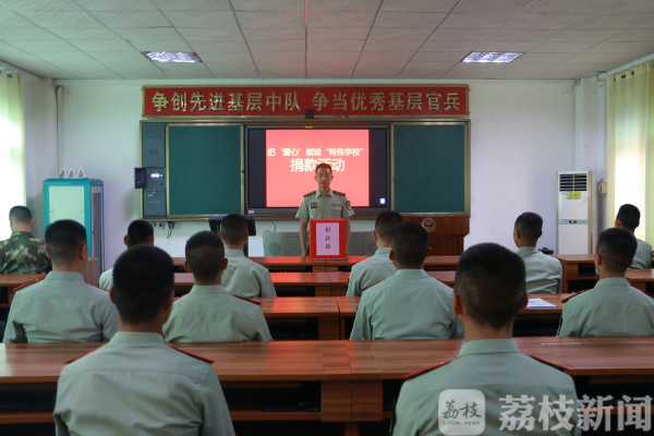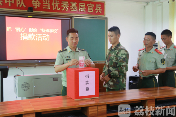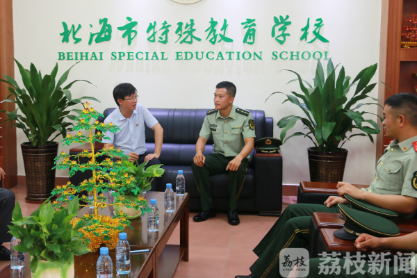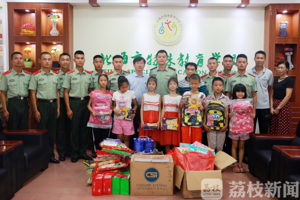 荔枝新闻讯(通讯员/武警广西北海支队 余海洋、钱庆斐)5月31日下午,武警北海支队机动中队官兵带着学习用品、牛奶及水果和官兵自行募捐的5000元善款来到北海市特殊教育学校,看望在这里接受康复学习的孩子们。