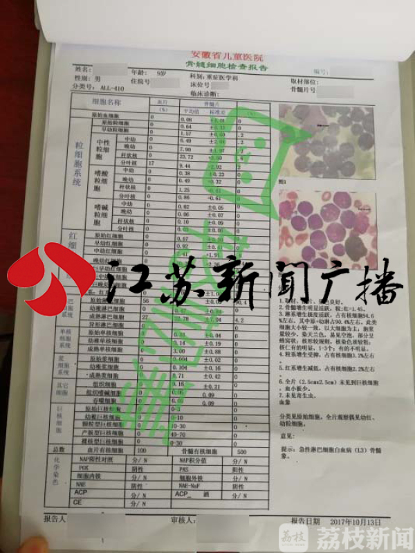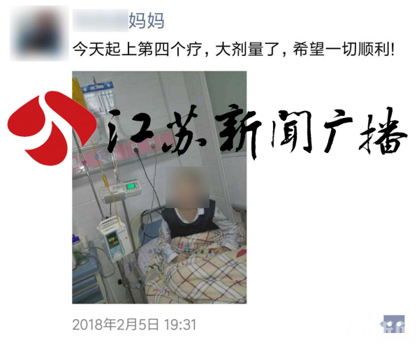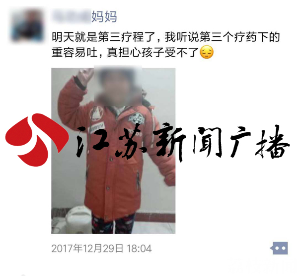 5月31日,江苏新闻广播记者赶到了为成成治疗的安徽省儿童医院,医院血液科主任屈丽君告诉记者,其实,成成已经挺过了最艰难的时候,目前病情恢复的很好:“这个孩子是诊断性淋巴细胞白血病,高危,当时来的时候病情很重,呼吸困难,咳嗽,是直接进ICU的,经过半年的规范化的联合化疗,目前病情已经好转,然后现在主要是巩固治疗和后期的维持治疗。”