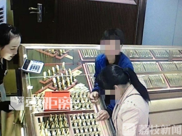 店里的监控显示,当时柜面上一共有两只手镯,店员在向这名女子介绍其中一款手镯的过程中,男子一直尝试着去拿柜面上的另一只手镯,看到店员抬头,男子又把手镯放回原位,可能女子没有看中这款,店员就低头把手镯放回了柜台内,而这时,男子趁势将另一只手镯收入囊中。