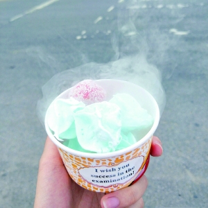 “前天,我和孩子在南锣鼓巷逛街的时候,发现有个摊位上围满了人,摊位上方的招牌写着‘冒烟冰淇淋,你不能不吃’的招牌,摊位前很多人手里拿着一个冒着烟的小碗在吃。”市民苏女士反映,孩子看到后说这个冰淇淋在网上很火,一定要吃。