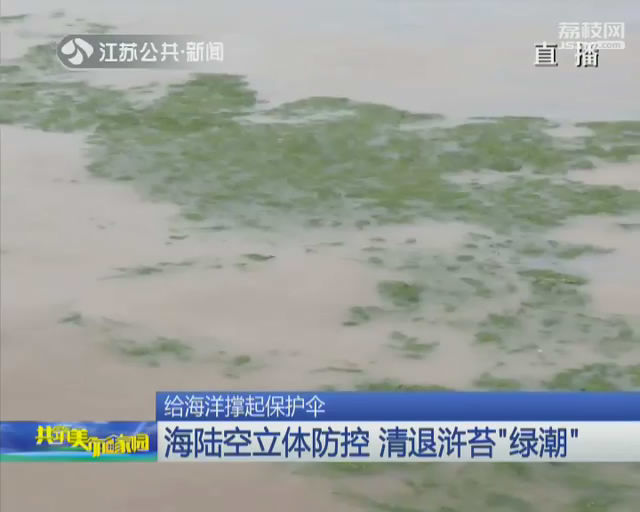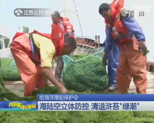 江苏省海洋渔业指挥部执法三大队副大队长洪杰说,通过海陆空三种方式立体化的对江苏海域的浒苔进行防控,一旦发现区域有浒苔,会立即调集附近的打捞船来打捞。