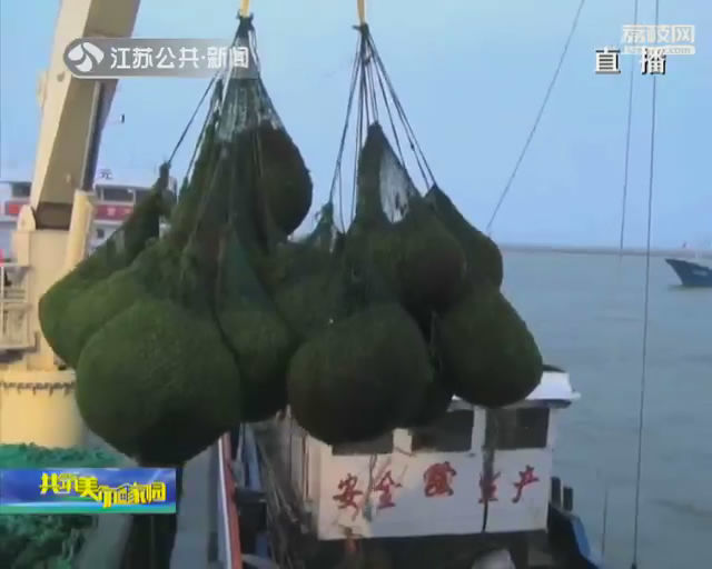 江苏台记者周婕:从盐城的滨海港出发,经过一个半小时的航行,记者来到了滨海外侧的某片海域。记者远远可以看见海上有一些漂浮物,近看可以发现这是一种绿色的海藻,它的学名就叫做浒苔。浒苔在海中的疯长会对海洋环境造成一定的影响,此刻就有很多渔船正在进行浒苔打捞作业,而据记者了解,全省共有227条这样的船会在海上进行浒苔打捞的工作。
