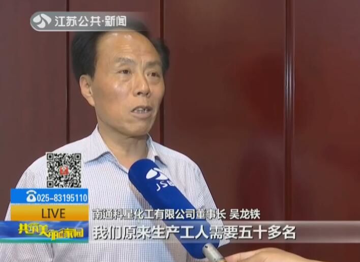 南通科星化工有限公司董事长吴龙铁说:“通过提升改造以后,我们原来生产工人需要五十多名,现在生产工人只需要八名,生产成本通过财务核算下降了15%-20%。”