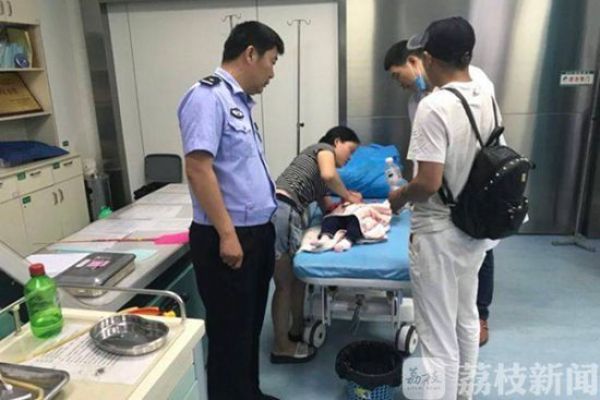 当晚9点多,宿迁市交警支队机动大队耿车卡口民警侍孝春,正岗亭在值班时,窗外传来一阵急促的敲击声。民警上前查看,一名女婴躺在大人怀中,头部和眼睛周边受伤流血,且不断哭闹。