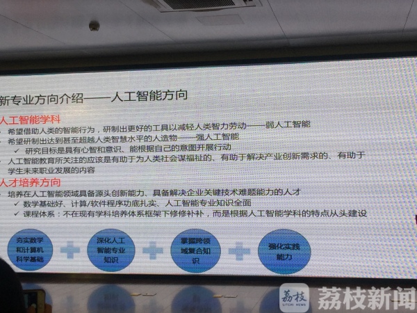 2017年南大实行大类招生培养联动改革,2018年仍按照专业和学科大类相结合的招生模式,计划招生总人数为3300人。随着该校人工智能学院的成立,该校今年招生大类从去年15个增加到16个,增设“计算机科学与技术(人工智能方向),招生计划80人,其中综合评价计划录取10人。南京大学人工智能学院申富饶教授表示,人工智能专业是根据人工智能学科的特点从头建设的专业,旨在培养在人工智能领域具备源头创新能力、具备解决企业关键技术难题能力的人才,要求学生数学基础好、计算软件程序功底扎实、人工智能专业知识全面。
