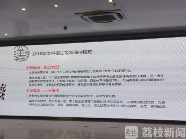 今年南大本科招生政策可以用“专业+2,计划不变;志愿录取,加分有别;不设级差,小分排序;江苏规则,一如去年”四句话概括。