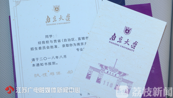 发布会上,还展示了2018南大录取通知书设计样式,通知书分为正本和封套,封套"榜"字取自南京科举博物馆中殿试皇榜的拓印,正本则采用了金箔工艺装饰纹路,通知书上,鼓楼校区正门线描图配以"鱼越龙门"的纹饰,寓意学子勇夺魁首。