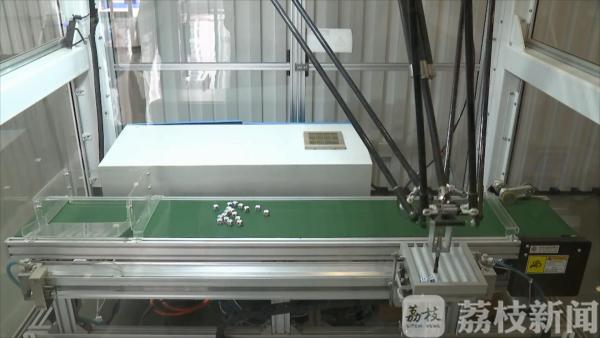 现场,20只骰(色)子被随机倒进输送带,呈现杂乱无章的状态。并联机器人可通过工业视觉识别系统,迅速定位这些散落在输送带上、处于移动状态的骰子,仅仅用了16秒钟,就按照点数,被其准确拣选到到托盘六个隔槽内,全方位展示了并联机器人视觉识别、高速跟踪定位和整理码垛的功能。