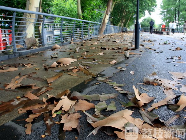 据了解环卫工人,近段时间里,江边路法国梧桐,都已出现不同程度的外皮脱落现象,变得浑身斑驳,每天要清扫20多包袋。