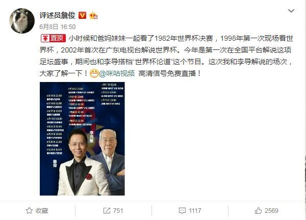 对于习惯了詹俊解说英超的球迷,今年终于可以看到詹俊在全国平台解说世界杯了~詹俊虽然很少出现在世界杯舞台,但常年解说英超为他树立了良好业界口碑,他是解说界是无法绕开的人物。