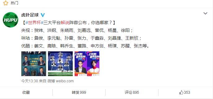 今年咪咕、优酷加入到转播阵营,球迷看世界杯有了更多选择。相比央视的四平八稳,詹俊领衔的咪咕解说阵容将会带来更多激情,而优酷则要将世界杯的娱乐化进行到底。