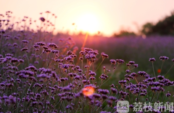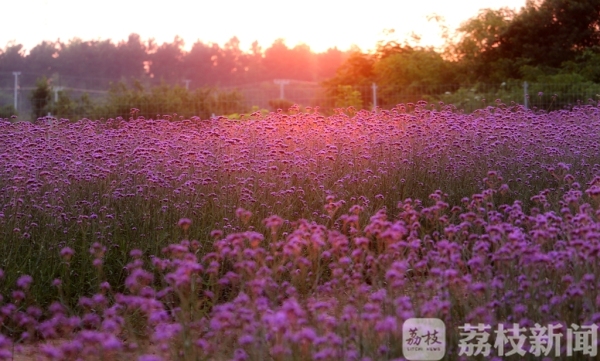 在许多人的眼中,紫色象征着浪漫高贵,六月的句容,天气渐热。这两天,句容白兔镇伏热花海庄园里30多亩的马鞭草已悄然绽放,一片紫色花海与村落、夕阳,勾勒出一幅迷人的田园画卷,美不胜收。