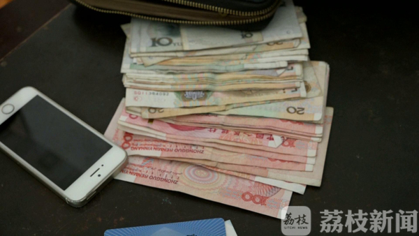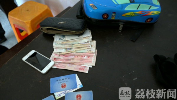 在金女士的家里,记者见到了这只造型像轿车的包,包内有一只钱包和一部苹果手机,钱包里有近三千元的现金和三张社保卡、一张银行卡。