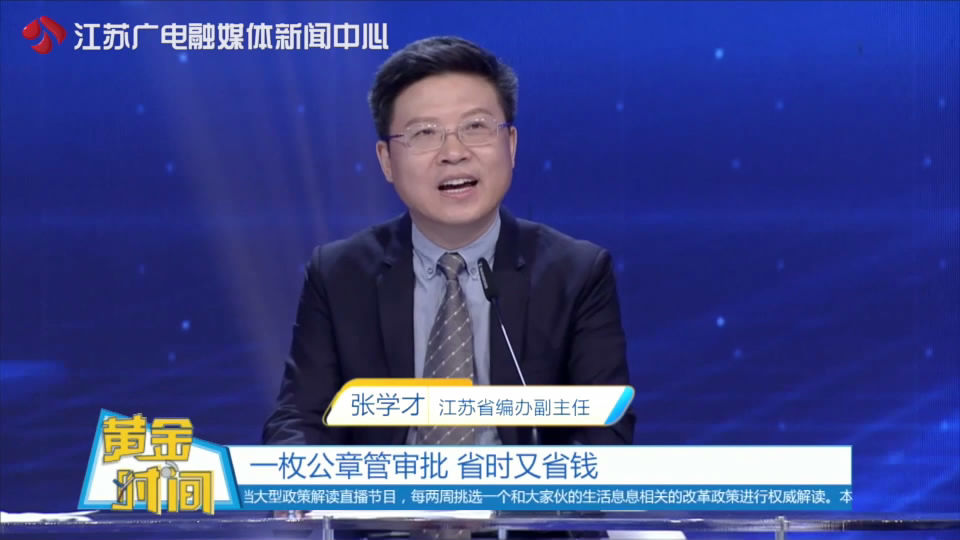 江苏省编办副主任 张学才: 江苏还有一项改革不得不说,就是相对集中行政许可权改革。江苏组建行政审批局,按照行政许可法的有关规定,将分散在各个部门的审批事项交由行政审批局来承担,实现一枚印章管审批。