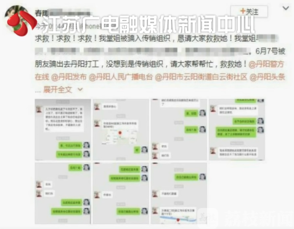 近日,镇江丹阳市公安局微警务的管理民警,在微博上发现一条信息:一名网友称自己的堂姐,被骗到丹阳陷入了传销组织。于是,一场解救行动迅速展开。