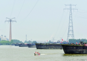 6月14日上午9点,随着镇江海事局副局长吴云锦的一声令下,长江镇江段正式启动封航行动。封航是为了拆除长江镇江段上方的一条过江电缆——镇江五峰山220千伏大跨越(以下简称五峰山大跨)。这是由江苏海事局实施的大规模封航行动的一部分,当天从南京到张家港的长江200公里范围内,共设置了16道拦截线,调动艇力达40多艘。