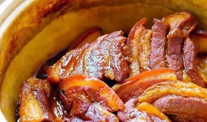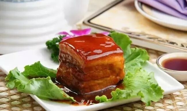 采用上好猪五花肉烹制,有肥而不腻的特殊口感,与用饴糖酱色上好肉汤慢火烹制的菜品相组合,刚好用来下饭。相传,把子肉起源于刘关张结义拜把子。