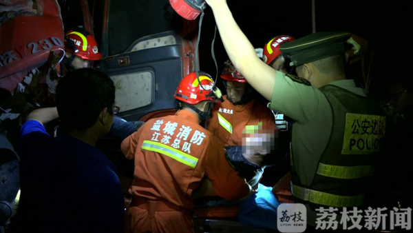 6月14日晚上10点钟左右,在射阳县临港工业区的辉山大道,一辆由南向北行驶的渣土车疑因道路不熟悉,一头撞上路尽头的蒸汽管道,导致车辆驾驶室严重变形,驾驶员被困在驾驶室内无法动弹,情况十分的危急。