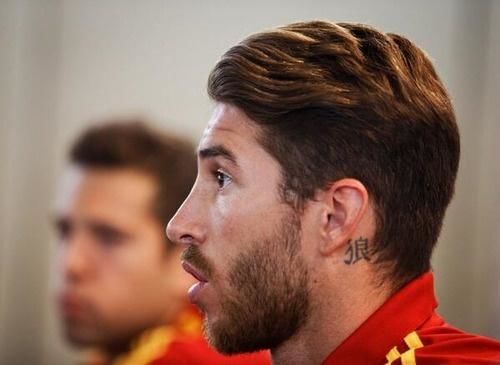 西班牙后卫拉莫斯在耳朵后面纹有一个中文的“狼”字,因为他喜欢狼。