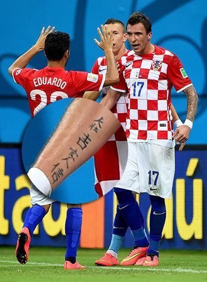 克罗地亚前锋曼朱基齐在手臂上纹有中文“大壮、吉、家人、信”,有点让人摸不着头脑。“大壮”也成为了这位空霸的外号。