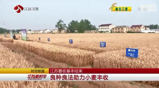 农以种为先。今年,我省小麦的良种普及率达到90%以上,其中,"淮麦33"、"宁麦13"等优势品种推广应用较为广泛,具有高产稳产、适应性广、抗病抗倒等特点。尽管今年五月份雨水偏多、光照不足,影响了小麦灌浆,但机械化匀播、测土配方施肥、病虫害统防统治等也给夏粮丰收打下了基础。在位于盐城射阳的新洋农场,小麦的最高亩产达到654公斤;睢宁、灌南、高邮等地的高产田块亩产都在550公斤上下。