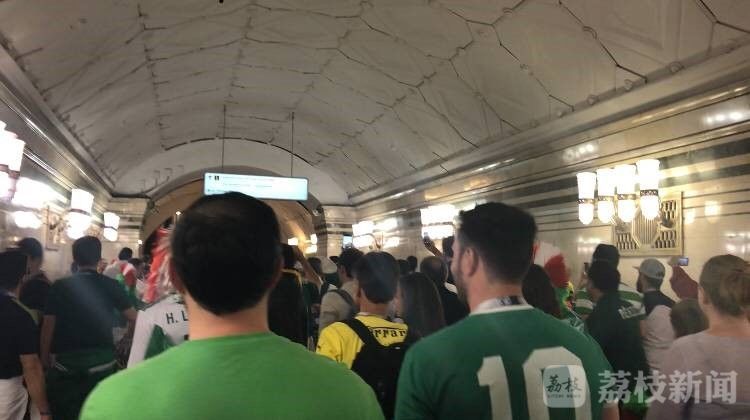 与此相比,以雄伟壮观、华丽古典著称的莫斯科地铁站内燃起的“球迷battle”,显得更加有趣。