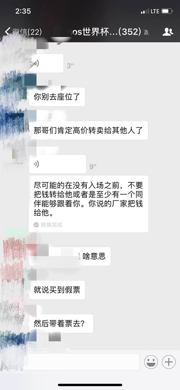 最让她难以置信的是:一名球迷在咸鱼上买到德国vs墨西哥的球票,在拿到球票后,卖家表示自己在官网上退票成功,所以原票作废。