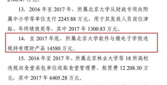 整改情况方面,据公布,目前,教育部所属北京大学软件与微电子学院已停止购买理财产品;其他问题正在整改。具体整改结果由教育部向社会公告。