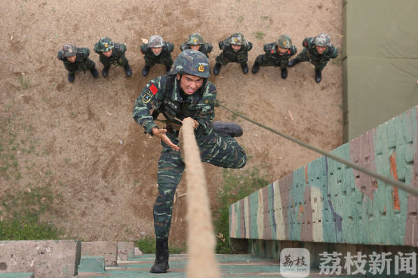 武警广西总队机动支队特战官兵在进行攀登竞赛