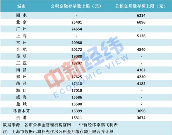 目前已公布住房公积金缴存基数上限或月缴存额上限的部分城市