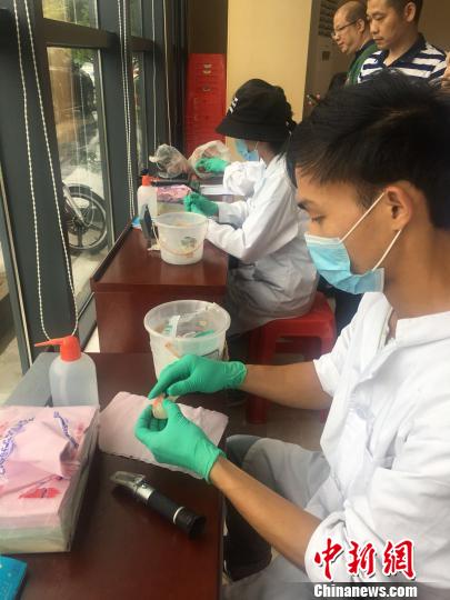 图为荔枝评比专家组成员、工作人员在进行评比 康孝娟 摄