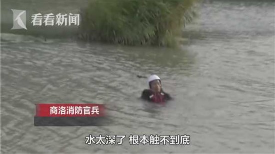 商洛消防官兵:找不到,水太深了,触不到底。你看下那鞋,有网子没?把网子拉上来!