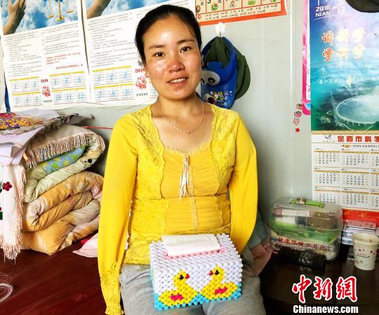 图为权红梅展示她的手工作品。 徐雪 摄