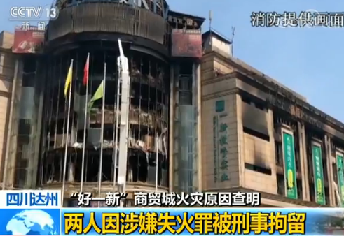 6月初,四川达州“好一新”商贸城发生火灾。记者从四川省消防部门了解到,经火灾现场调查认定,是由于租户自行拉接的照明电源线短路引燃可燃物导致火灾。