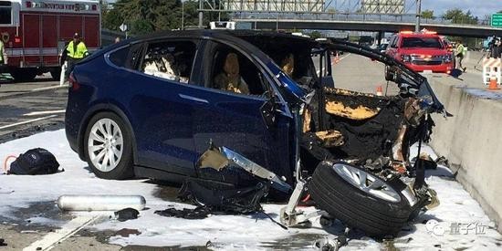 最终,这辆Model X撞向路旁的水泥隔离墩后,车毁人亡。