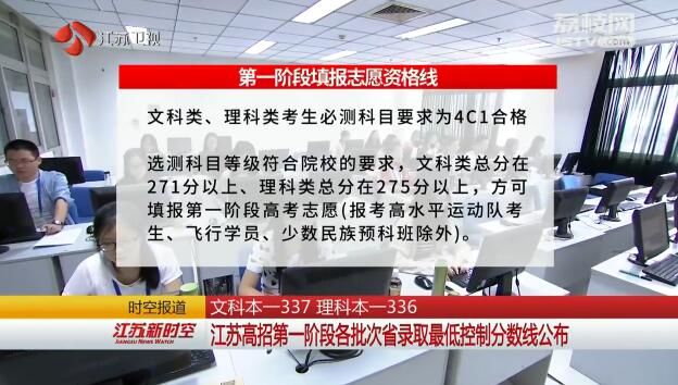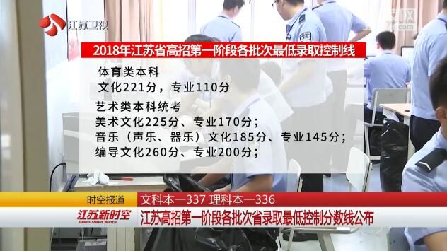 6月24日下午,2018年江苏省高招第一阶段各批次最低录取控制线公布。