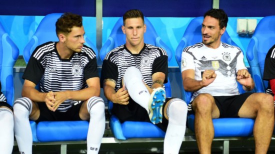 腾讯体育6月26日讯 德国队在本届世界杯的表现并不出色,首轮比赛德国队爆冷0-1不敌墨西哥,第二轮比赛德国队最后时刻惊险绝杀瑞典。在前两场比赛中卫冕冠军德国队的后防线暴露出巨大问题,防守失位,传球失误,连续犯错。德国媒体《图片报》分析,德国队可以在最后一轮对阵韩国队的比赛中派上聚勒与胡梅尔斯搭档后防组合。