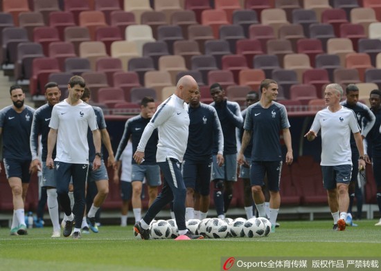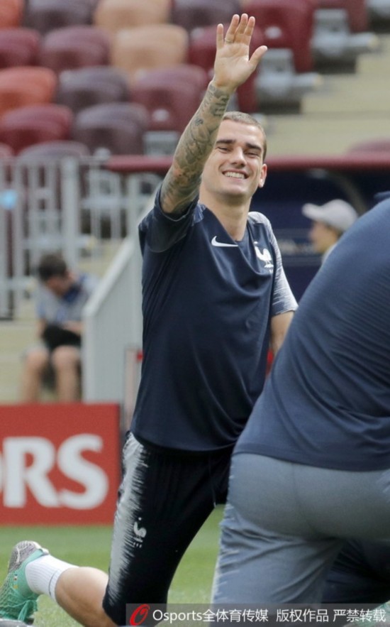 2018年6月25日,2018年俄罗斯世界杯C组:法国队踩场热身 格列茨曼挥手致意。