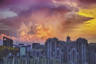 高温昨“烧”出南京美丽晚霞。扬子晚报记者 吴颖凯 摄
