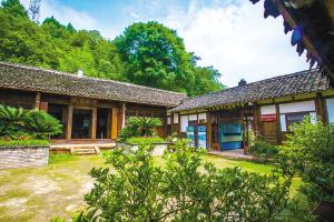 面前是潺潺流过的溪水——杨柳河,背后依靠的是苍翠的青山——寨子山,背山邻水是贺麟故居林盘的特点之一,因此,也有着非常优良的生态本底。大朝门上,著名书法家、国家一级美术师张幼矩先生题匾篆书“心园”,再往上走几步石阶,便来到一个三重四合院。在陈列室里,透明的玻璃柜里展示着贺麟的书籍、手稿、照片等。贺麟是中国著名哲学家、教育家、翻译家,毕业于清华大学的前身北京清华学堂,金堂县人。据金堂县五凤镇城建办主任文德介绍,“修旧如旧”是修复故居过程中坚持的原则,还保留了1950年之前的建筑结构和主要房间功能,包括贺麟先生和他父母亲居住的房屋、大朝门、绣花楼、祠堂、碾坊、磨坊等。