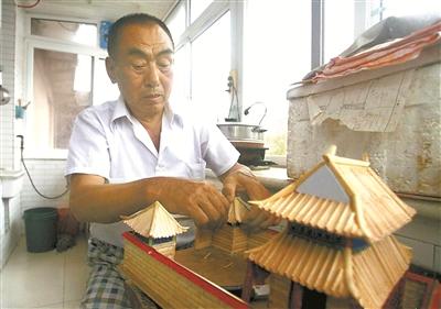 亭台楼阁、江南水乡、名胜古迹、老庄稼院……你能想象这些微缩景观的制作材料全部来自废旧的筷子、羊肉串签子以及冰棍棒吗?在辽宁鞍山,79岁的老人于作福用废旧物品制作了200多件微缩景观作品。退休后,于作福经常到凉亭山去溜达,看到被丢弃的冰棍棒觉得可惜,寻思能做些什么。当时,老人正在读一本书,里面有关于红楼梦的14个景观图片,其中大观园特别好看。于作福就想,能不能用捡回来的废旧物品制作微缩景观。从那以后,于作福就开始捡筷子、签子,洗干净后,就成了所有微缩景观的主要材料。