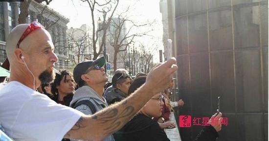 ▲在迪伦跳楼现场拍照的人群 图据每日邮报