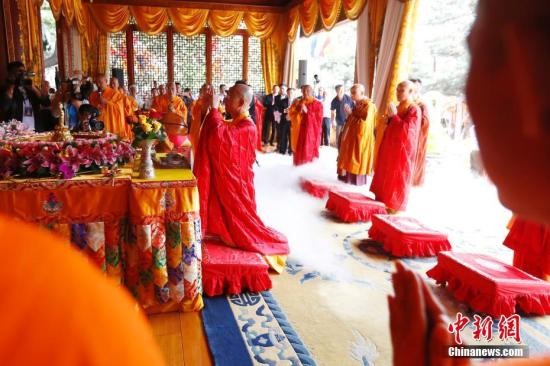 资料图:法师礼佛。 中新社记者 富田 摄