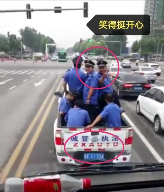 原标题:邢台通报城管执法车违章载人队员还比胜利手势:通报批评6人