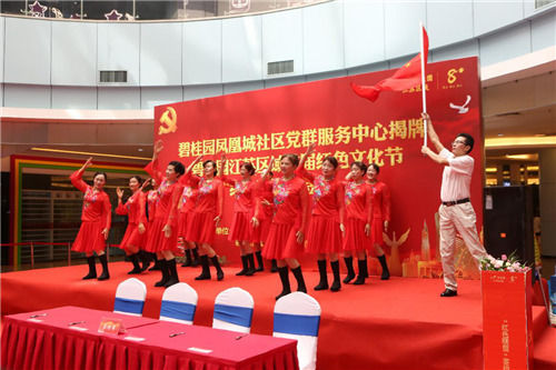 “唱支山歌给党听, 我把党来比母亲……”闷热的夏日午后,碧桂园欢乐城内传来阵阵嘹亮的歌声,这是碧桂园凤凰城社区党员在用他们自己的方式,庆祝社区党群服务中心的正式揭牌。
